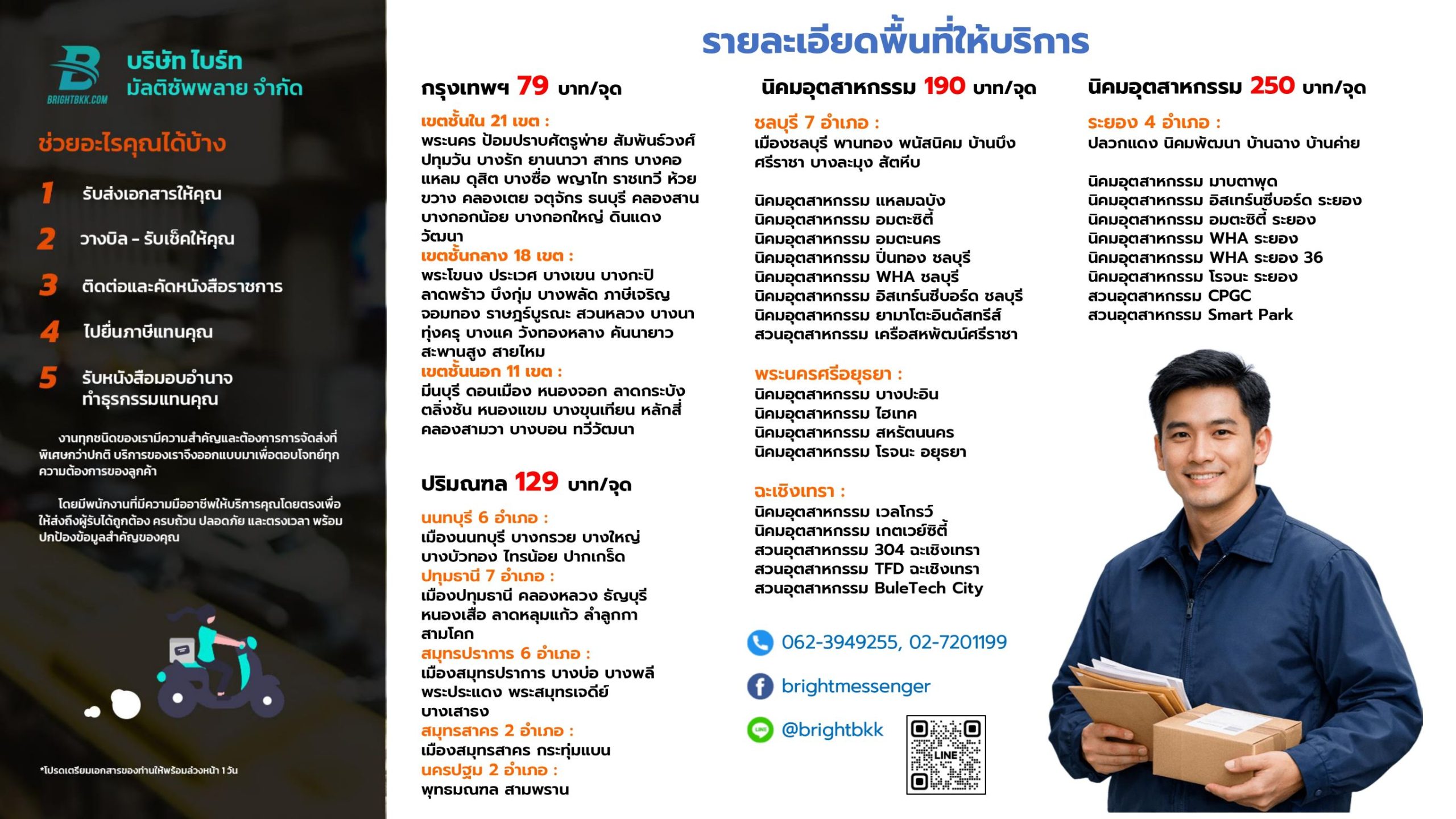 ไบร์ท บริการรับ-ส่งเอกสาร กรุงเทพฯ ปริมณฑล ฉะเชิงเทรา ชลบุรี ระยอง